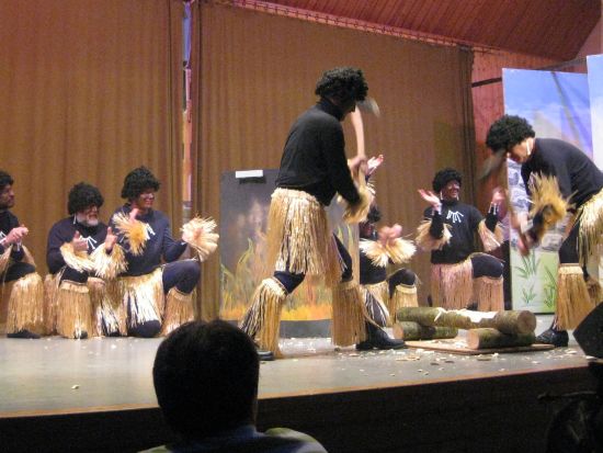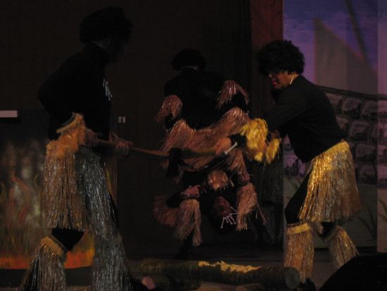 "Servus Afrika" ist der Titel dieser Holzer-Einlage, die mit wilder afrikanischer Trommel-Musik und einem Speertanz beginnt.