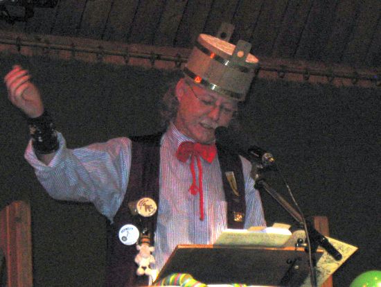 Chef Sepp begrüßt die vielen närrischen Gäste, die wieder gekommen sind.
