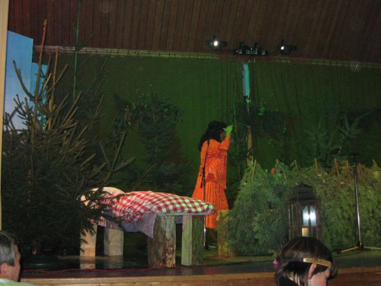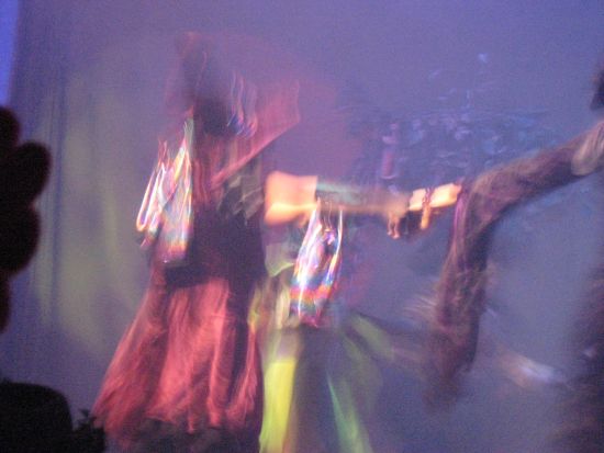 Beim letzten Auftritt betreten glänzend gewandete Gestalten die Bühne.