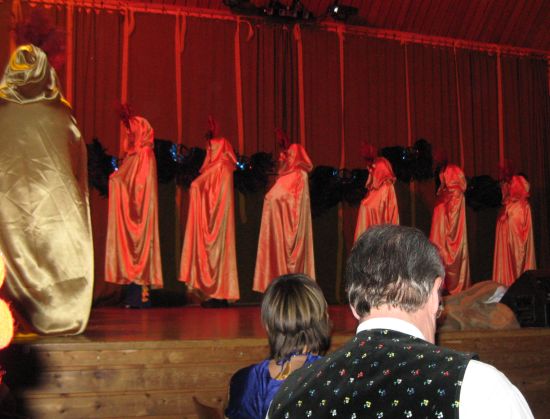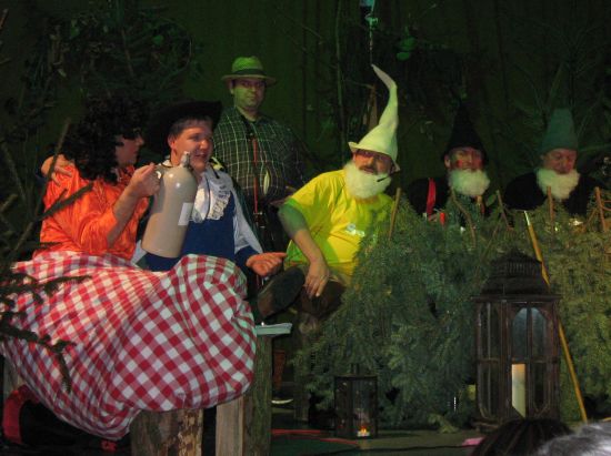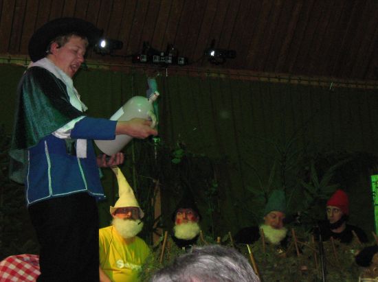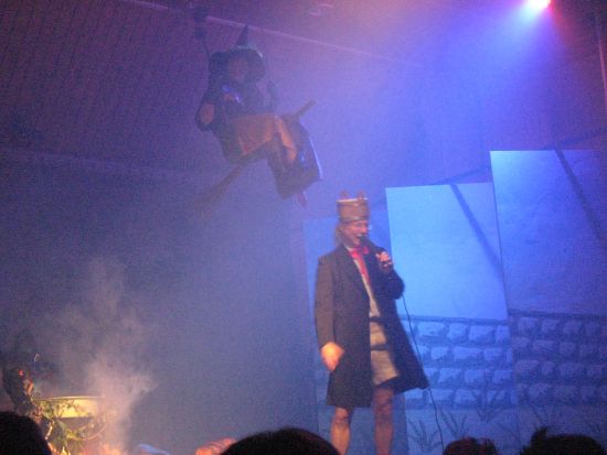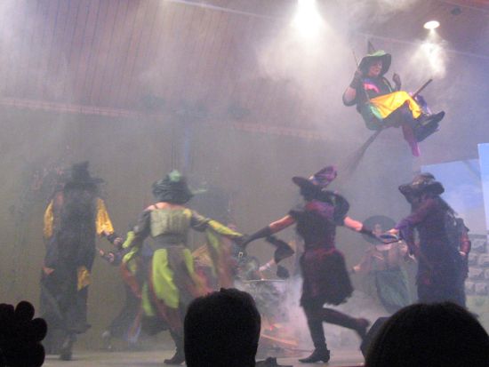 Während die Oberhexe noch an der Decke schaukelt, leitet Ansager Rainer in den letzten Punkt vor der Pause über: