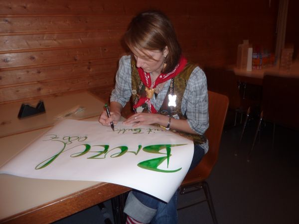 ... Schilder geschrieben und ...