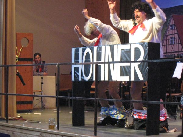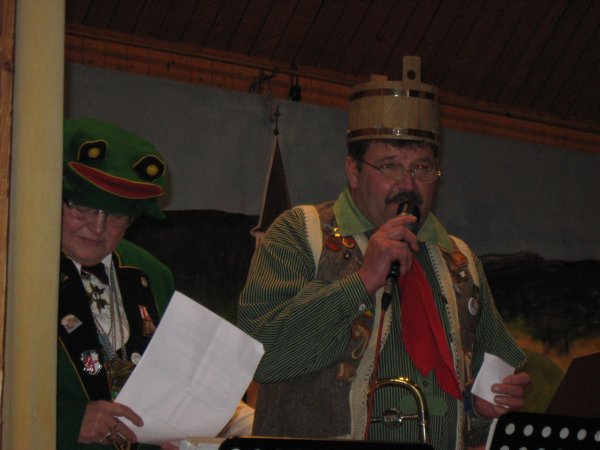 Er und Ute Wiegand liefern sich eine musikalische Streiterei für und wider die Fasnet und die daran Beteiligten. Fast alle anwesenden Zünfte bekommen dabei ihr Fett weg!
