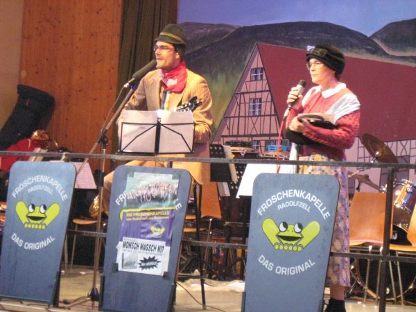 Später übernehmen die Froschen wieder. Nach dem Leserbrief von vor 9 Jahren, als sich ein Stahringer über die "Las-Vegas-Musik" beschwerte, bringen die Musiker heute auch viele volkstümliche Sachen, augenzwinkernd angesagt von Leiter Tobias Franz.