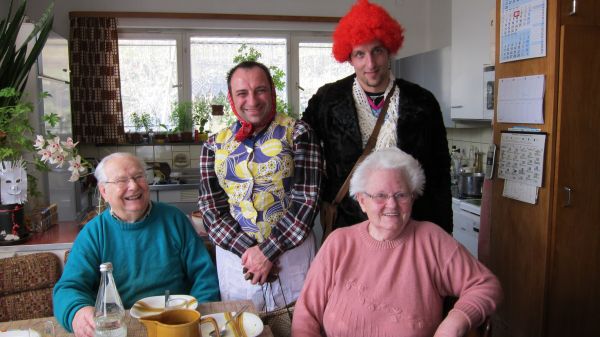 Die Suppenköche und ein Schnitzwieb haben sich bei Kochs eingefunden.