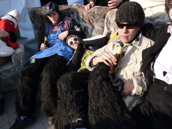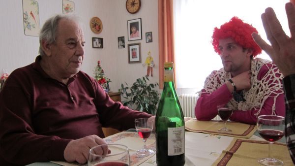 Sepp verneigt sich vor den jungen Narren. Oder ob er doch nur ein Guetsele aufhebt?