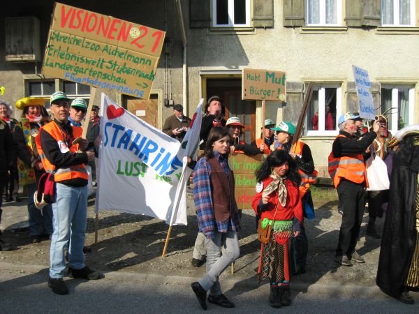Hier demonstriert man närrisch für "Stahringen 21" .