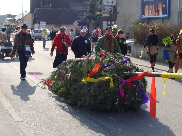 Die Holzer haben wieder einen prächtigen Narrenbaum mit ins Dorf gebracht.