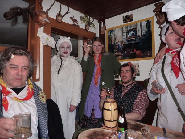 Jetzt machen sich die Schnitzwieber bereit, ins Dorf zu gehen und das Narrenblättle unter die Leute zu bringen.