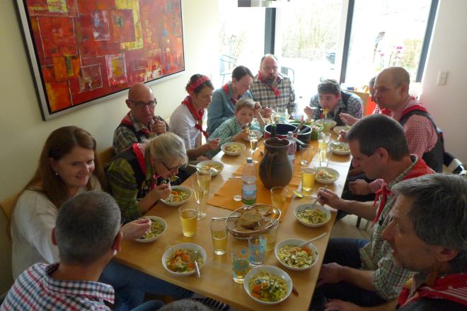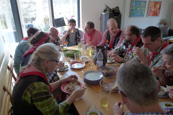 Normalerweise würden die Holzer vormittags die Halle abdekorieren (brauchen sie nicht) und dann in der Zunftstube ihr "Uziefer-Esse" veranstalten. (Dürfen sie nicht.)