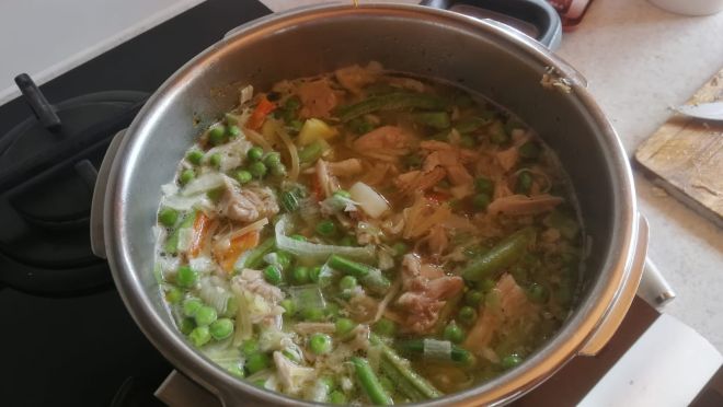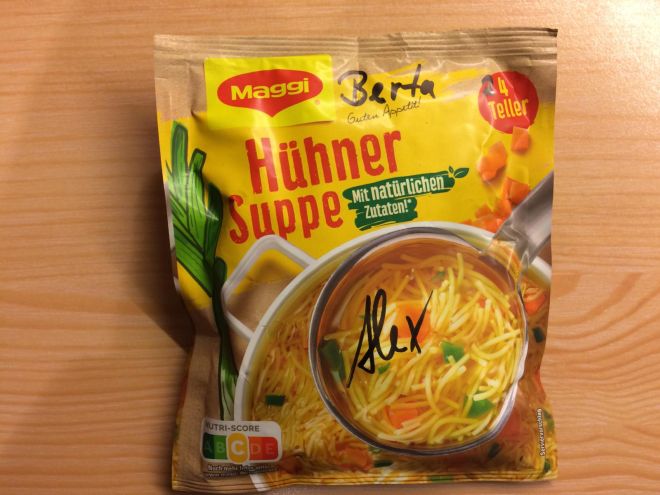 Steffi hat das Päckle mit Gemüse veredelt, sucht aber vergeblich nach dem Hühnerfleisch.