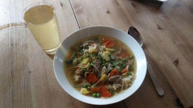 Beim Reinhard gibt's am Abend reichlich Fleisch in der Thai-Version der Hennesupp!