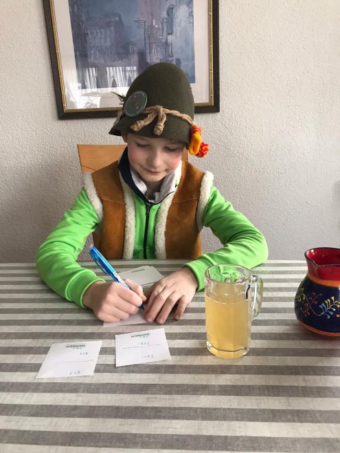 Ganz der Profii: Jonas hat sogar Lose gemacht und verkauft. Und der Moscht steht auch schon auf dem Tisch!