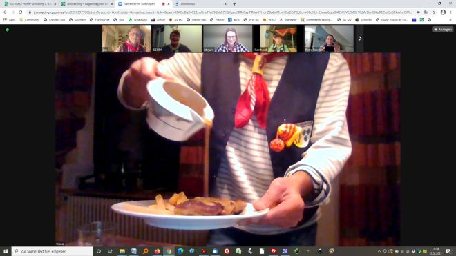 Das Schnitzelessen fand diesmal "dehomm" statt und man traf sich dafür am heimischen Rechner über das Internet.
