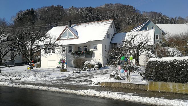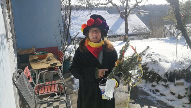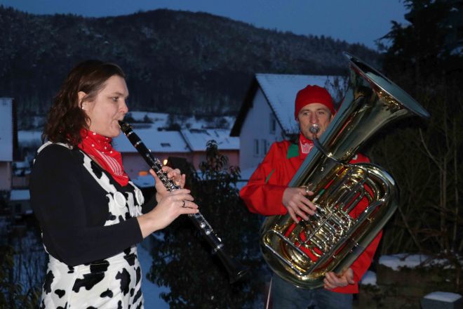 Um 18 Uhr erklang aus vielen Häusern und Gärten der Narrenmarsch. Jeder der Musikanten hat ihn für sich (oder mit Mitgliedern der eigenen Familie) gepielt, aber es hörte sich toll an.