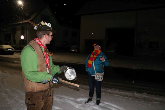 Aber Jane hat ein kleines Wecken organisiert. Drei Zweier-Teams laufen unabhängig voneinander mit Geschepper durchs Dorf.