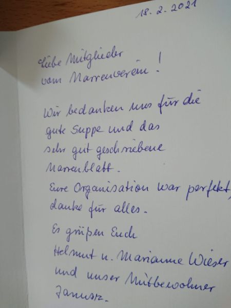Es gibt viel Lob für unsere Aktionen, zum Teil auch schriftlich:
