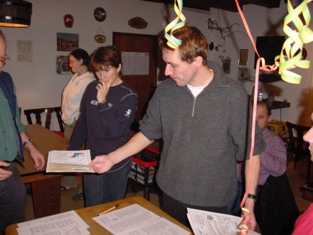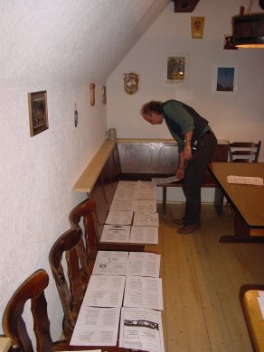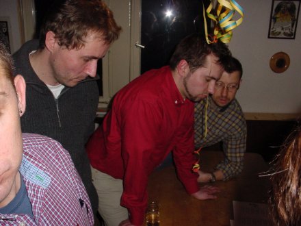Am Freitag Abend waren wir schon recht weit gekommen, so dass einige von uns noch den Nachtumzug in Steißlingen besuchten. Ein paar harrten bis 22.30 Uhr in der Zunftstube aus und verlegten dann das "Büro" in den Ochsen, wo noch drei weitere Gedichte entstanden.