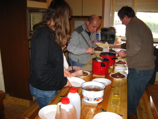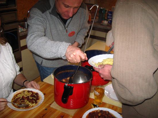 Da unsere eingeplante Köchin Rita K. sich vor der Fasnet leider das Bein gebrochen hat, kann sie sich nicht der Herstellung unserer geliebten "Bohne & Gnepfle" widmen. Die Familie Koch stellt zwar ein gutes Quantum vom "Knecht" eingeweichter Bohnen zur Verfügung, die Zubereitung des traditionellen Endredaktions-Mittagessens erfolgt dann aber "so nebenher" von Chefredakteur raz persönlich, direkt in der Zunftstubenküche. (An das Mitbringen der Kochtöpfe hatte er wenigstens gedacht ...)