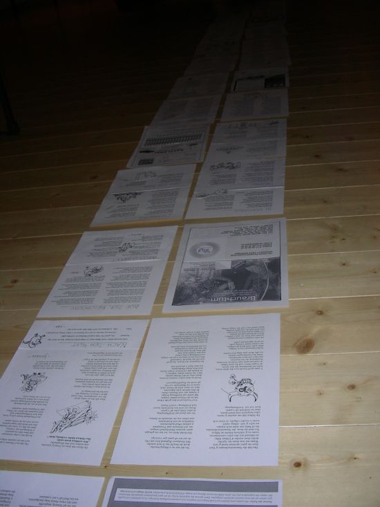 01.12 Uhr: Die Seiten sind bereit zum Auslegen. Dazu gehen wir in den "Schoofstall" hinüber, wo es mehr Platz hat.