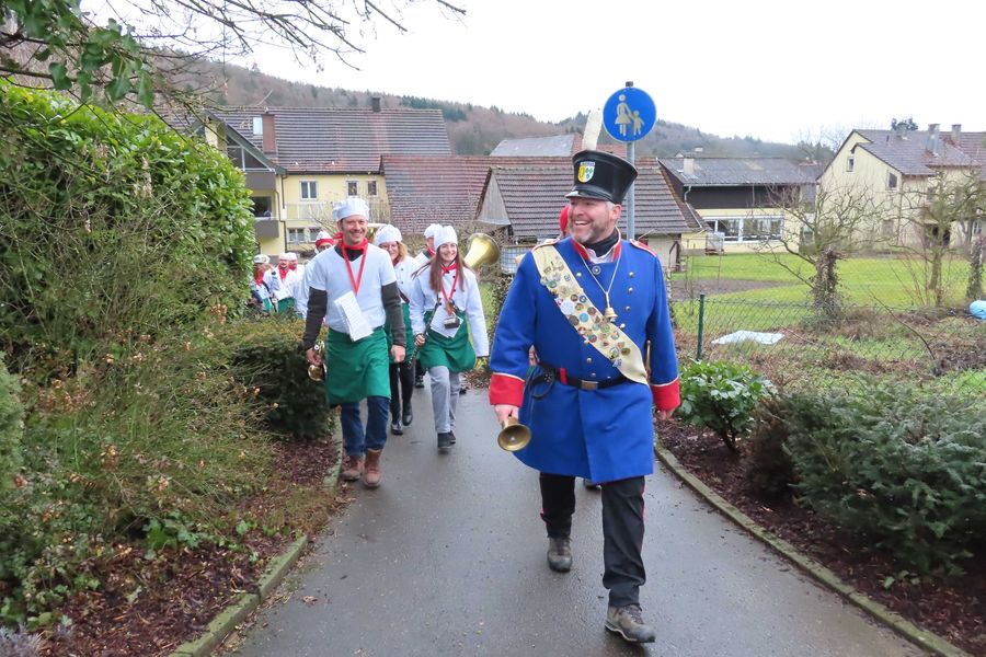 Ab 9 Uhr treffen sich die Schnitzwieber in der Halle und stärken sich erst mal mit Narrensuppe, bevor sie auf ihre Narrenblatt-Verkaufstour durchs Dorf gehen.