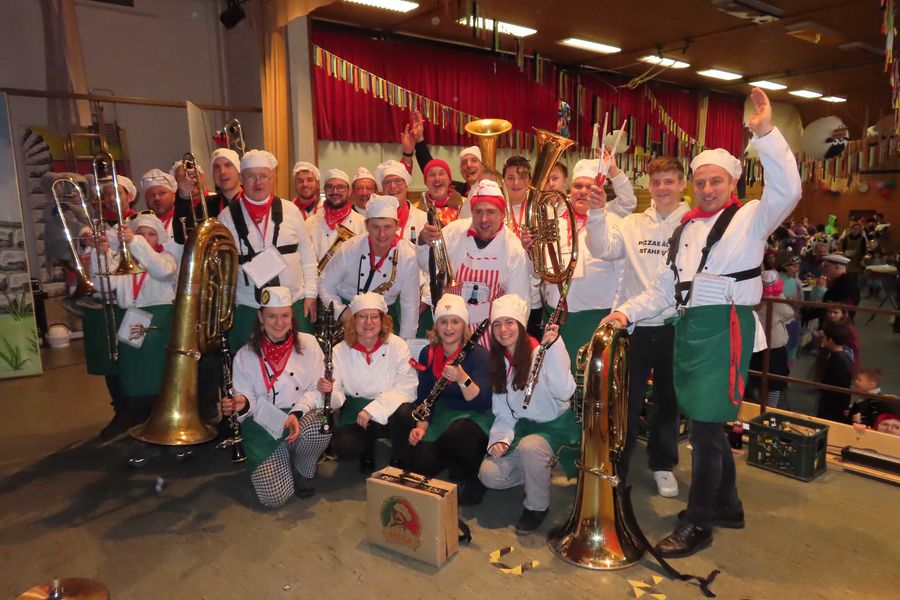 In der Halle sorgen die Guggenmusiker „Mühlegoeschter“ …