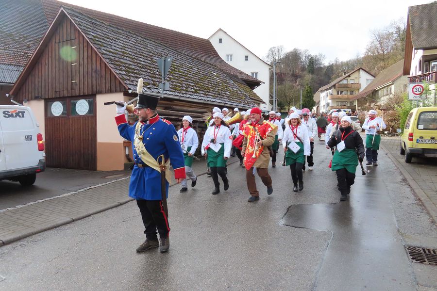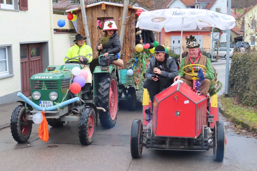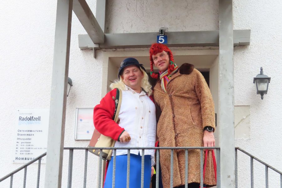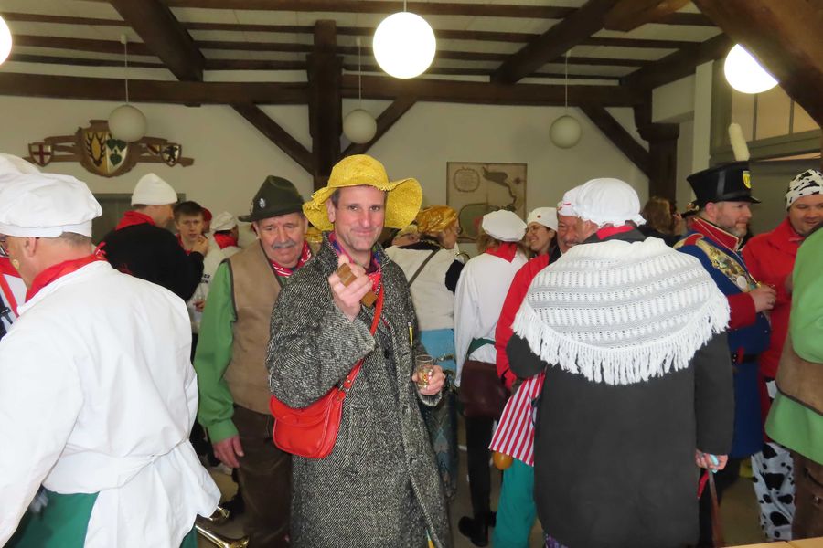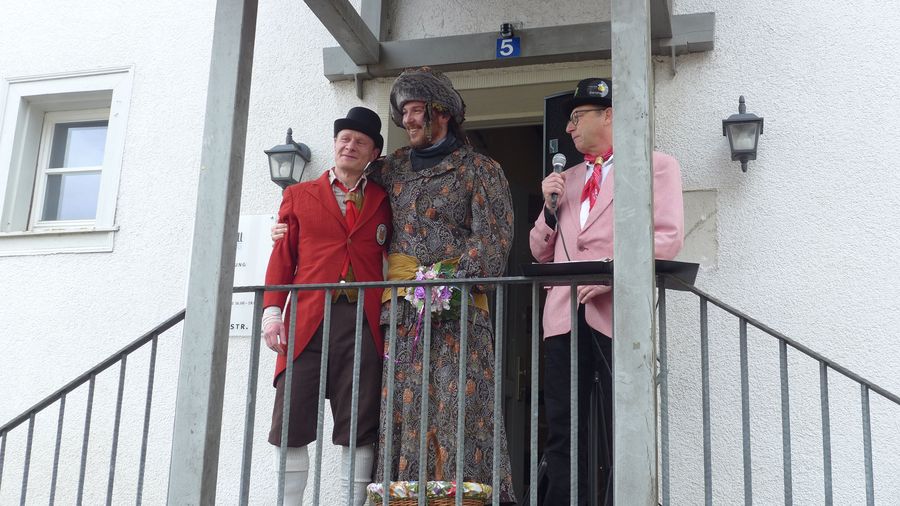 Um halb zwei findet man sich im Rathaus zum närrischen Empfang mit Wein und Stengele im Rathaus ein.