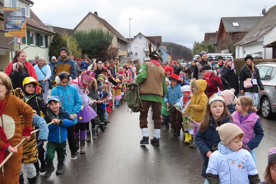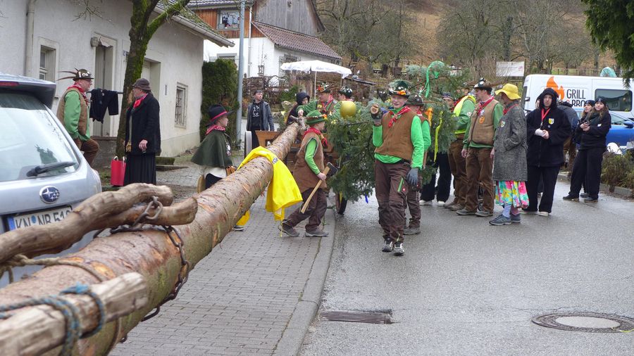 Die Kinder ziehen wie immer den Narrenbaum.