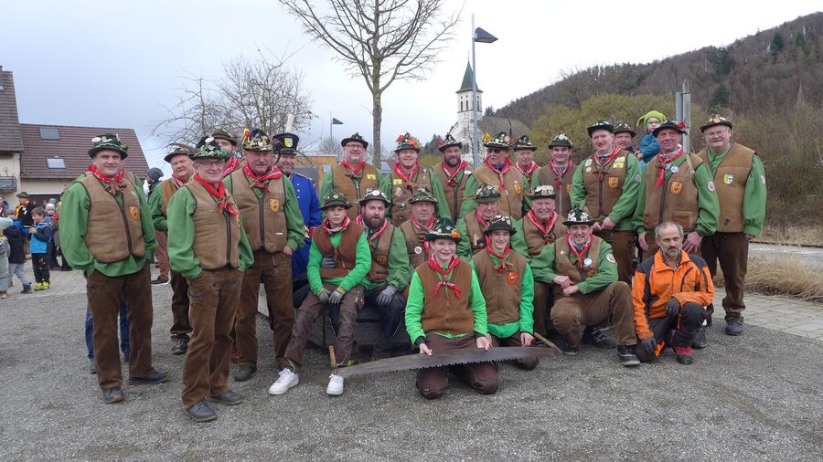 … stellen sich die Holzer erst mal zum Gruppenbild auf.