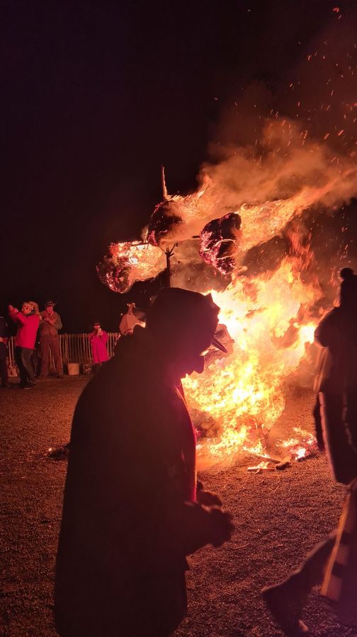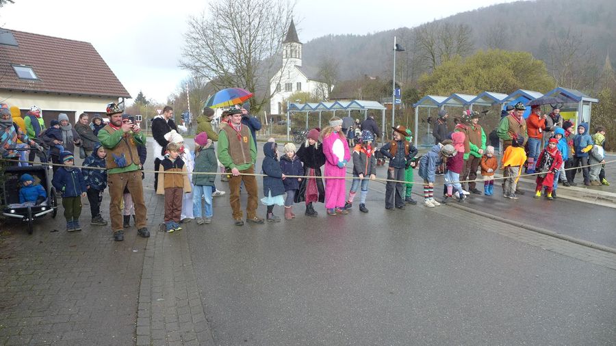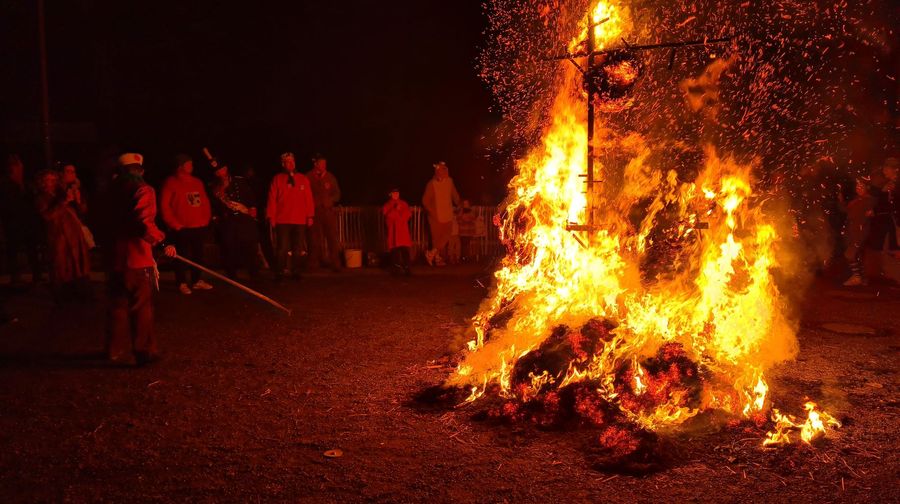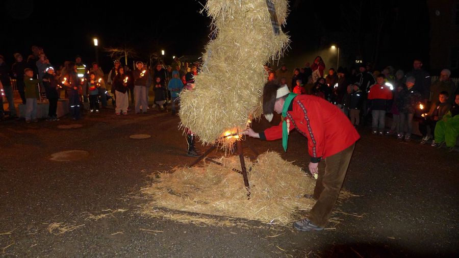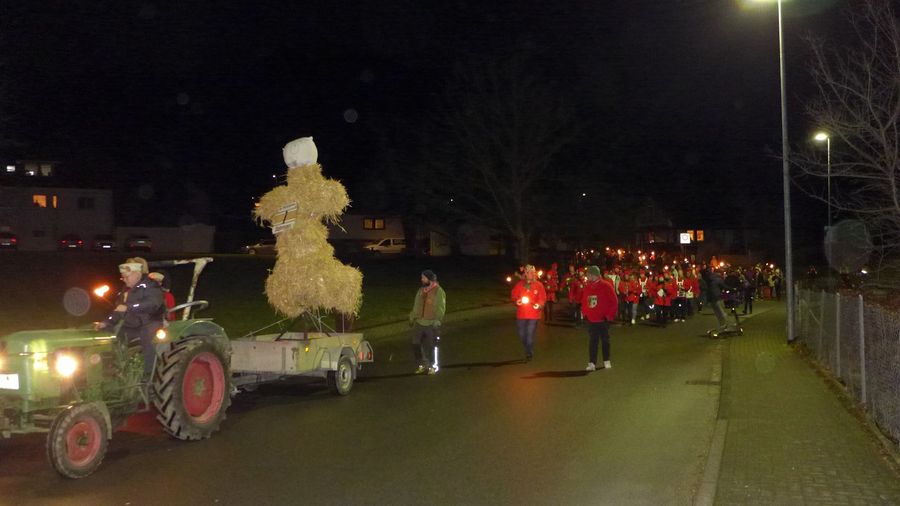 … zieht man ein letztes Mal gemeinsam durchs Dorf. Die Strohpuppe, die die ausgehende Fasnet darstellt, voran.