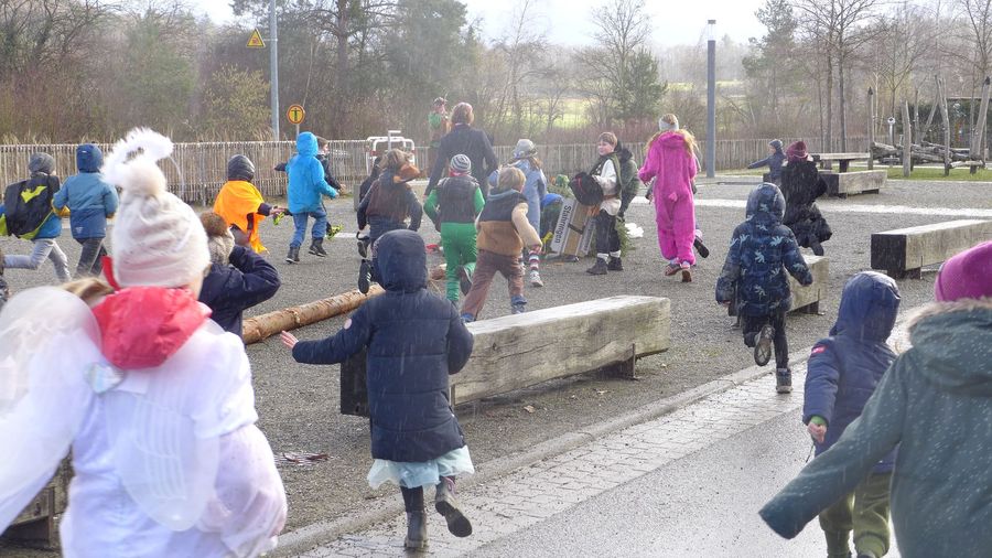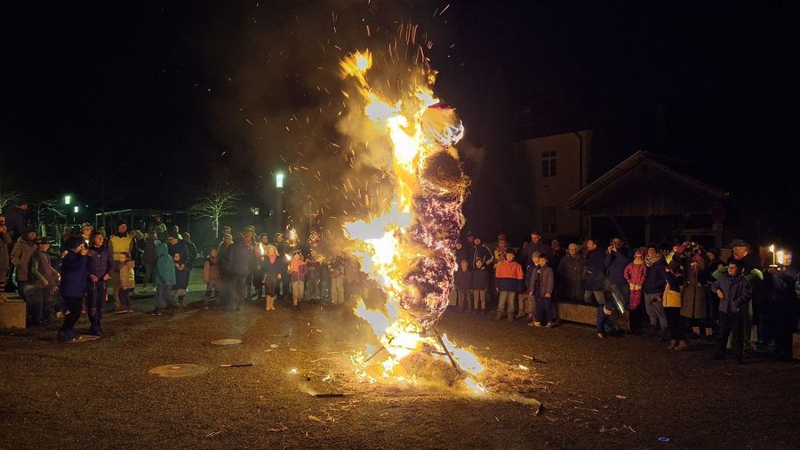Gegen sieben am Abend trifft man sich bei der Schule zum letzten Akt der diesjährigen Fasnet.