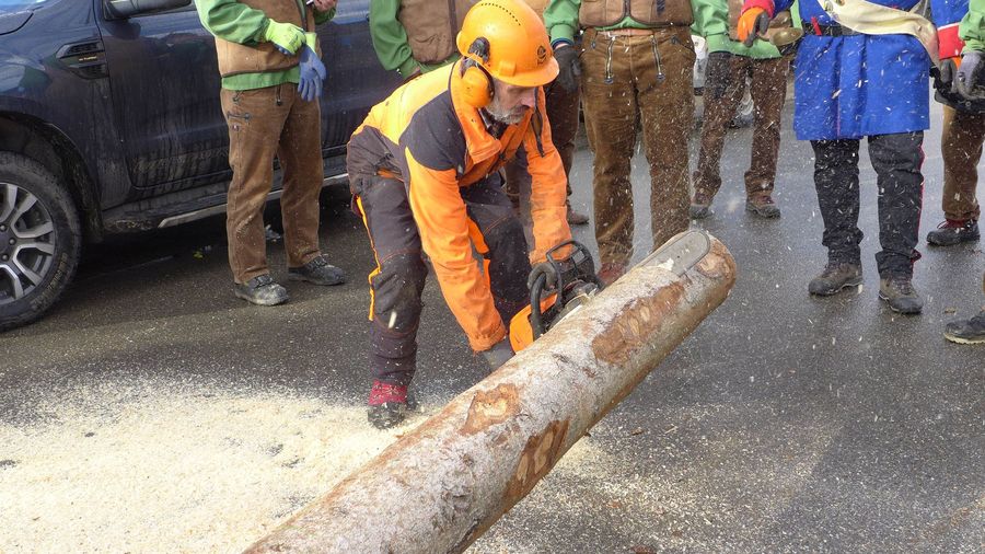 Erstmals dürfen zwei Frauen an die Säge! Die Befürchtung, dass man ihnen eine stumpfe unterjubeln würde, hat sich nicht bestätigt, im Gegenteil, die beiden werden notfalls mit Rat und ein bisschen Tat unterstützt.