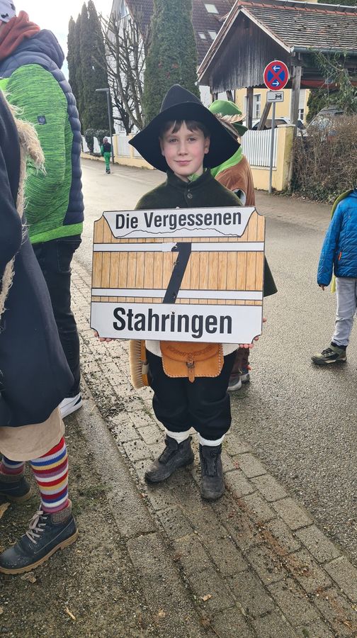Das vorher am Baum hängende Schild der „Vergessenen 7“ erinnert an das Seenarrentreffen, bei dem die Liggeringer die Stahringer (Umzugsnummer 7) im Flyer vergessen haben.