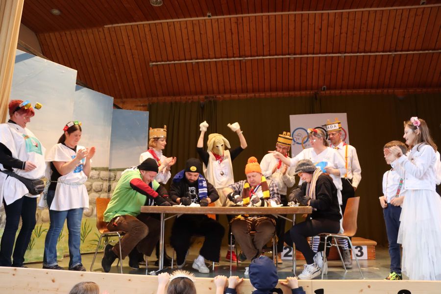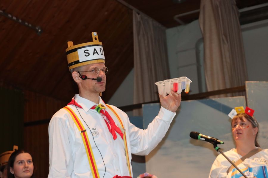 … pantomimisch olymische Begriffe darstellen, die dann von ausgewählten Narren erraten werden müssen.
