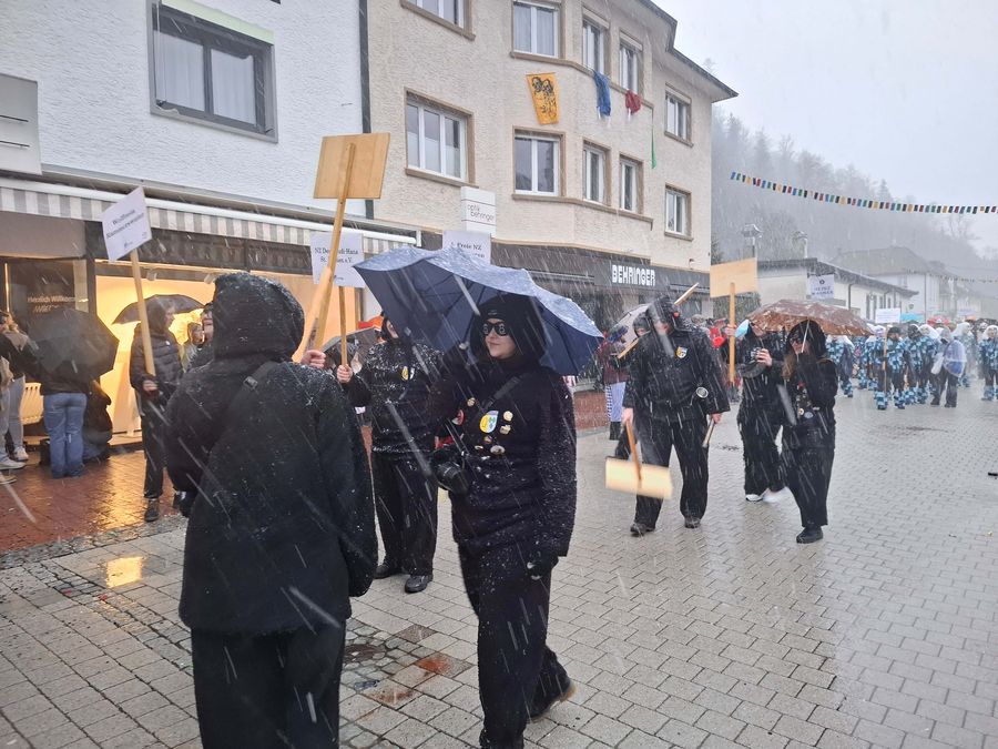 Viele Zünfte waren gar nicht erst gekommen, die Stahringer nahmen viele der verwaisten Teilnehmerschilder mit und hatten viel Spaß damit.